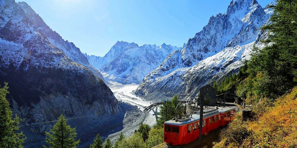 Для желающих увлекательная поездка на историческом поезде «RedExpressChamonix» к леднику MerdeGlasse* (45 евро, включает проезд на поезде, спуск на фуникулёре к леднику, посещение ледовой пещеры).