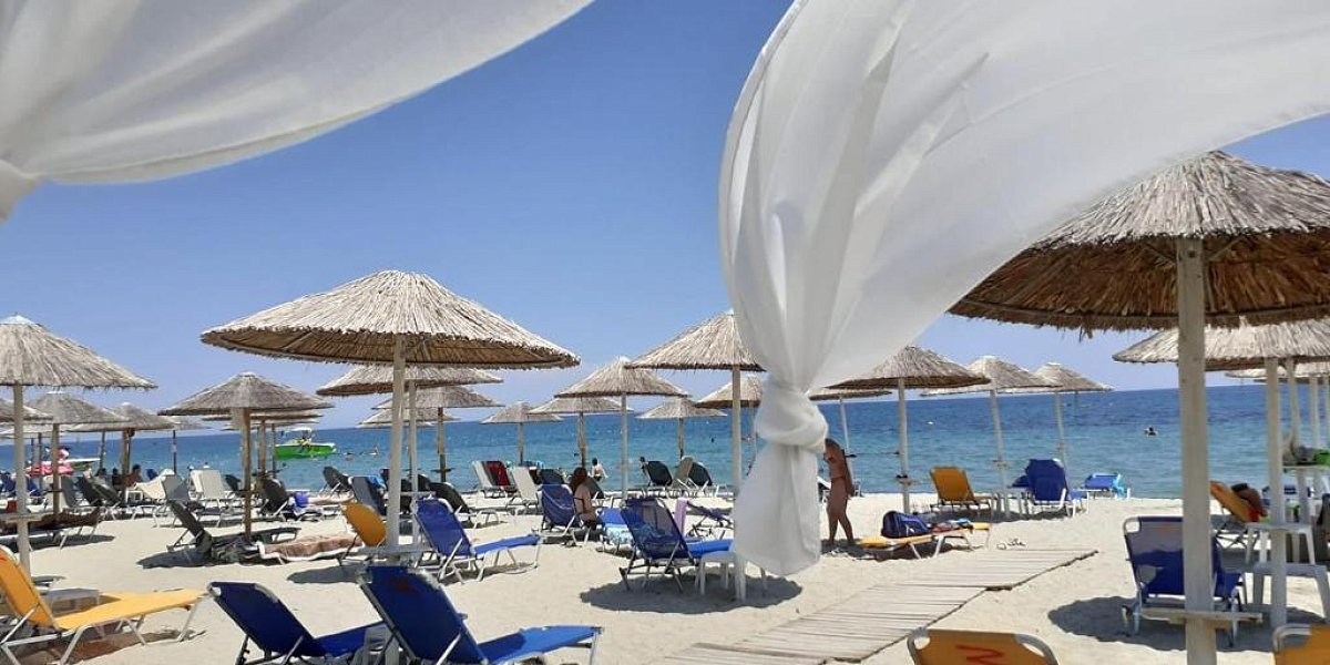 Море и пляж: широкий песчаный берег, пологий вход в воду — идеально для тех, кто любит комфортный заход в море и длинные утренние заплывы. На пляже — лежаки и зонты (за доп. плату), душ, бары с кофе frappé и свежевыжатым апельсиновым соком.