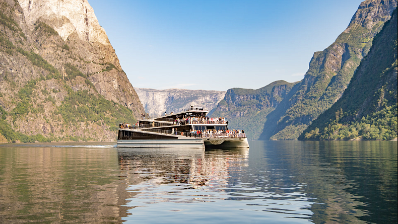 Круиз по Согнефьорду (2 часа) Обязательная доплата: взрослые - 70€; дети 4-15 лет – 40€, на вип пассажирском судне с электрическим двигателем, без шума и вибрации скользит мимо 1000-метровых гор, открывая захватывающие виды на неприступные скалы и живописные берега. Благодаря нескольким комфортным открытым палубам по прогулочному судну легко перемещаться, можно услышать звуки водопадов. Высокие панорамные окна открывают великолепный вид на фьорд и окружающий ландшафт.
