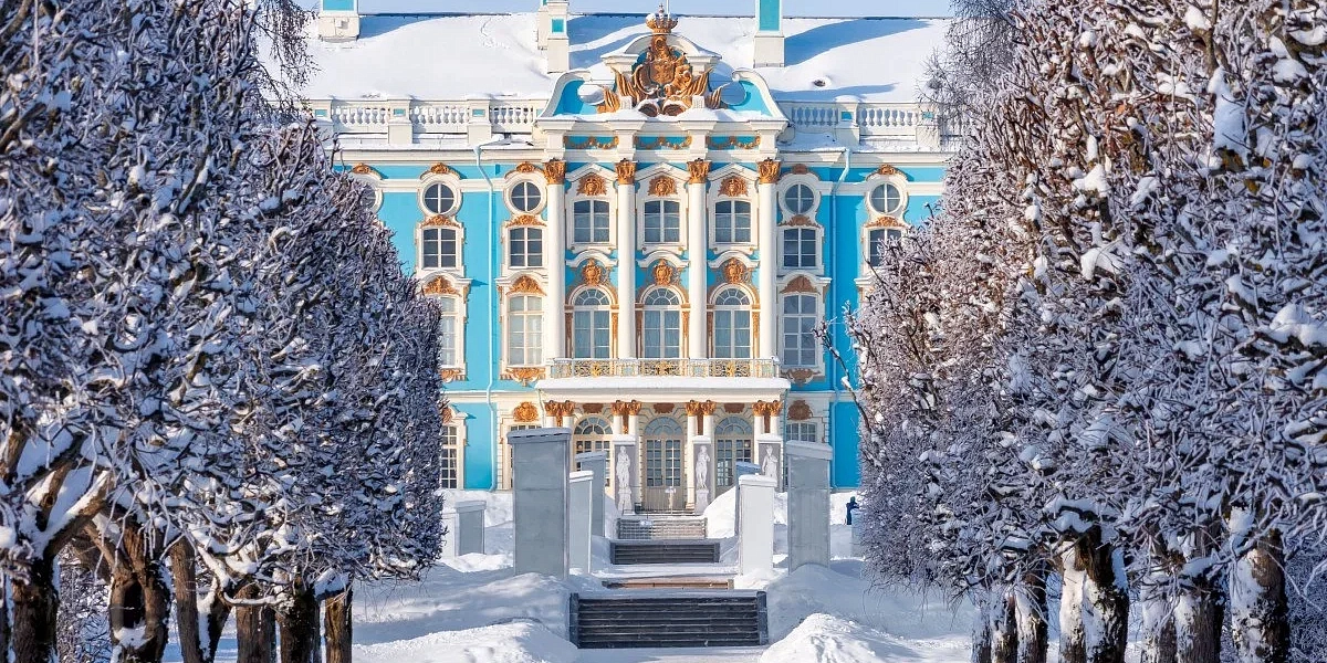 Зимой Царское Село представляет собой сказочный зимний пейзаж, где снег покрывает Екатерининский и Александровский парки, превращая их в "снежное королевство". Можно увидеть застывшие пруды, заснеженные аллеи и архитектурные сооружения, такие как Екатерининский дворец, павильоны "Эрмитаж" и "Грот", Камеронову галерею и Адмиралтейство. Зимняя прогулка по парку позволяет насладиться тишиной и красотой заснеженных уголков, даже если многие водные объекты будут покрыты льдом.
