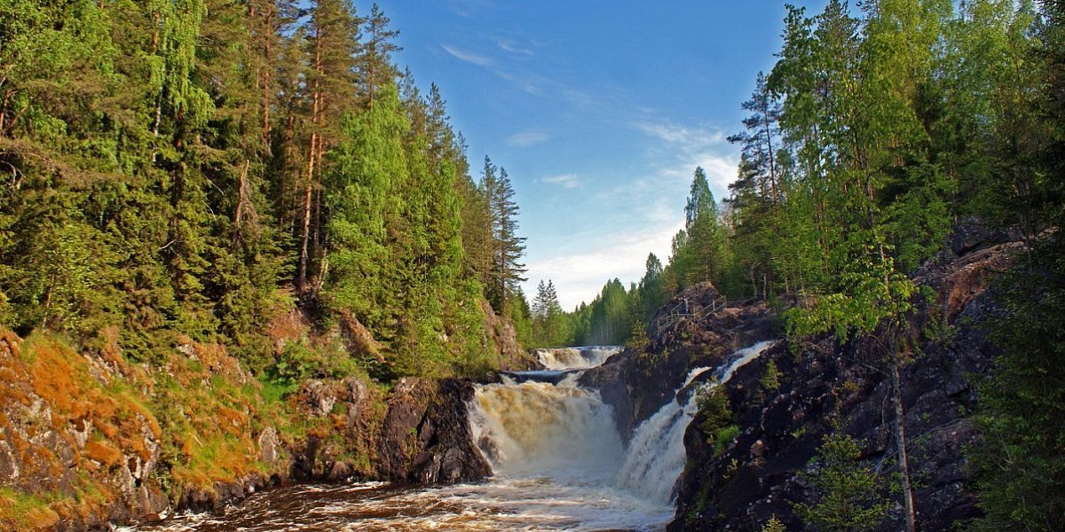 Далее мы едем на экскурсию в природный заповедник «Кивач». Конечно же, посетим главную достопримечательность — 11-метровый равнинный водопад Кивач на реке Суна. Он не самый высокий, но точно самый популярный у туристов! Выглядит водопад действительно впечатляюще: сжатые с двух сторон скалами, воды реки Суна обрушиваются вниз четырьмя каскадами. Кстати, Кивач – второй по величине равнинный водопад Европы.